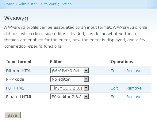 The last major improvement was to tie client-side editors to input formats instead of form elements (textareas). This means, that we now are prepared to load and display a different editor for each input format, or none at all, f.e. if "PHP code" is selected. (btw, this works for D5 and D6 already)