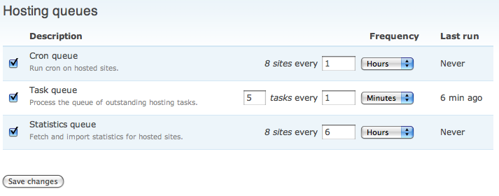 I've built a new API for use in hm2, which allows you to define queues that would like to get triggered. I've built the api so that defining 2 functions hook_hosting_queues and then the queue handler, gives you an impressive amount of free process accounting, and also configurability.