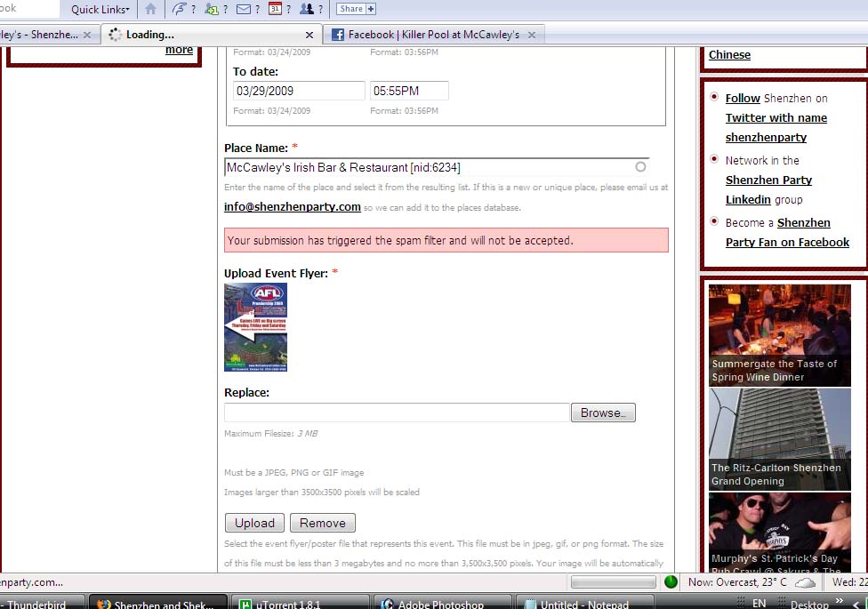 "Your submission has triggered the installed spam filter and will not be accepted."