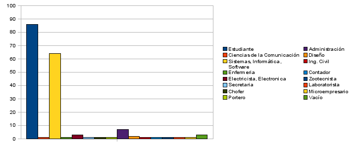 - No se buscó profundidad técnica en el evento porque es mi convicción que la computadora está al servicio del hombre y no al revés. Y que así como es sencillo usar un cuchillo para cortar pan, tan fácil debería ser usar un sistema de computadora para cualquier tarea(resalto que es un ideal). Esto está refrendado por las estadísticas de edad y profesión. Me alegra que tengas el deseo de profundizar tus conocimientos y estas bienvenido a participar, además pronto daremos talleres de Drupal para profundizar el tema, espero cumplan tus expectativas.