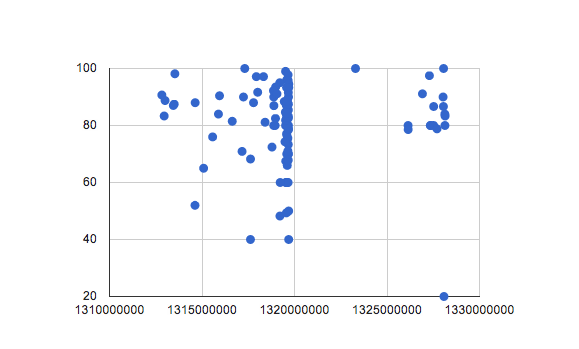 If we look at the quality of sessions correlated to the time they were submitted we can see that there is no correlation: