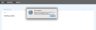 - the module broke the javascript on the site , producing the following popup on every page : [javascript error](http://groups.drupal.org/files/Picture 29_0.png)