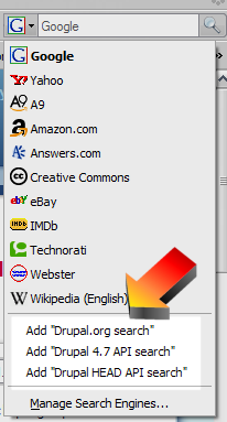 To start using it go to Michael's page and in Firefox just click on the search engine icon in the left of the search box. Select 'Add drupal.org Search'. Wallah you can now search drupal from your search box.