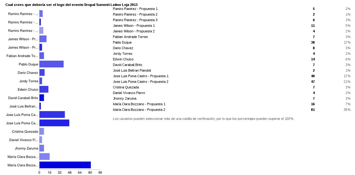 Ya disponemos del logo oficial del evento Drupal Summit Latino Loja 2013, con gran satisfacción felicitamos a la ganadora María Clara Bozzano por su propuesta N° 2, determinado por el número de votos recibidos por parte de sus amigos y comunidad nacional e internacional de Drupal.