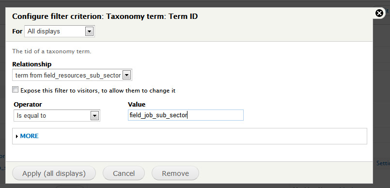 Using an exposed filter on Jobs should filter titles of Resources on the same page.