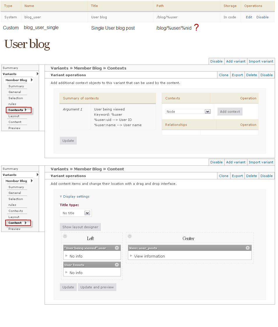 I've enabled the built in System Page (blog_user) that allows a User's blog posts to be easily viewed. I chose a Flexible panel and put 3 Views inside, (user_posts, User being viewed, and User Tweets). That part was simple enough and great built-in functionality.