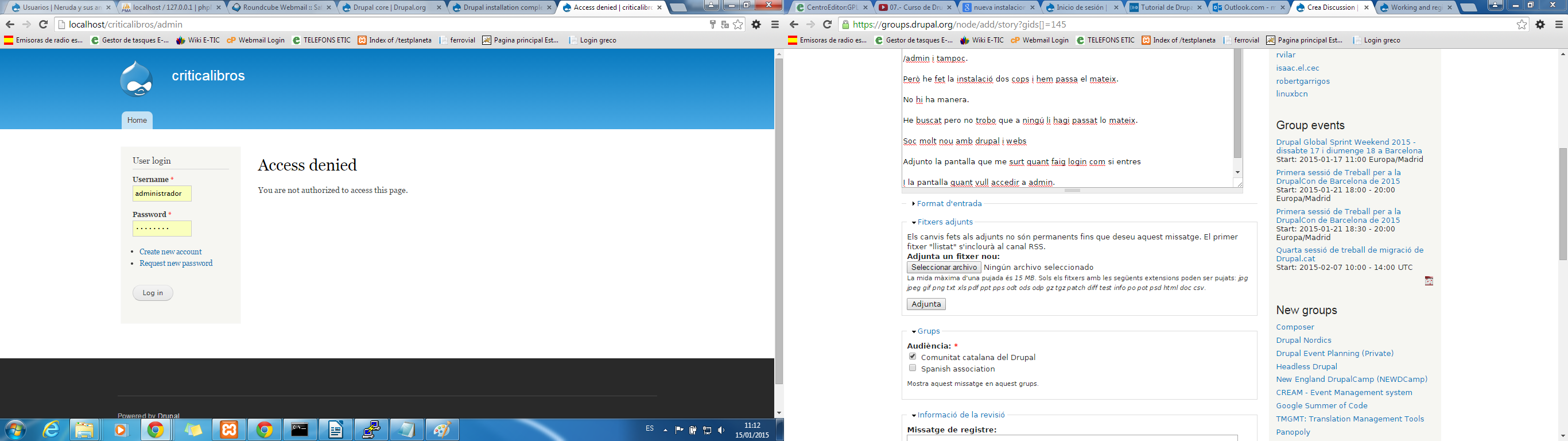 he hecho una nueva instalación de drupal , dice que se ha hecho correctamente .