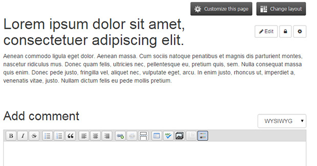 There are no Customize this page or Change layout buttons like you'd find, say, a piece of news content (or any of the other default content types):