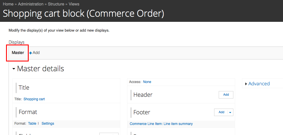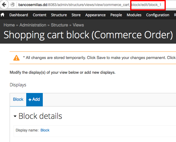 Just in case, the name of the block showing this "view" is "Shopping cart"