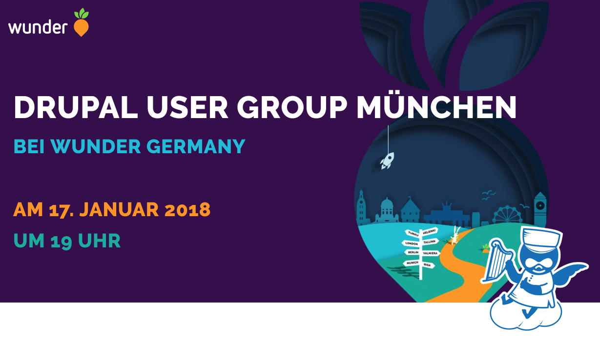 Im ersten Drupal-Treffen des Jahres 2018 empfängt uns wieder einmal Wunder in ihren Büros. Neulinge, Gäste der #btconf und alle Interessierten an Drupal und Webtechnologien sind natürlich auch dieses mal wieder herzlich willkommen. Für Verpflegung wird auch dank unseres Gastgeber Wunder wieder gesorgt sein.