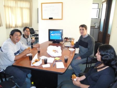 Al final, después de haber comido unas ricas salteñas, Karim se comprometió a subir las fotos del evento en la página de FaceBook del grupo Drupal Bolivia.