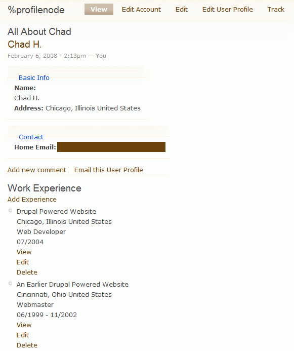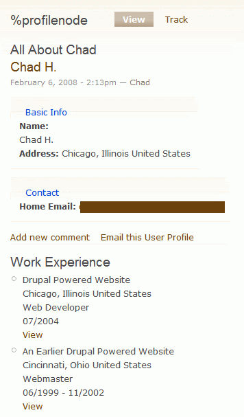 Could you possibly provide a link to the end result, i.e., the user profile page that shows the Work History section? I'm just curious as to how it looks.