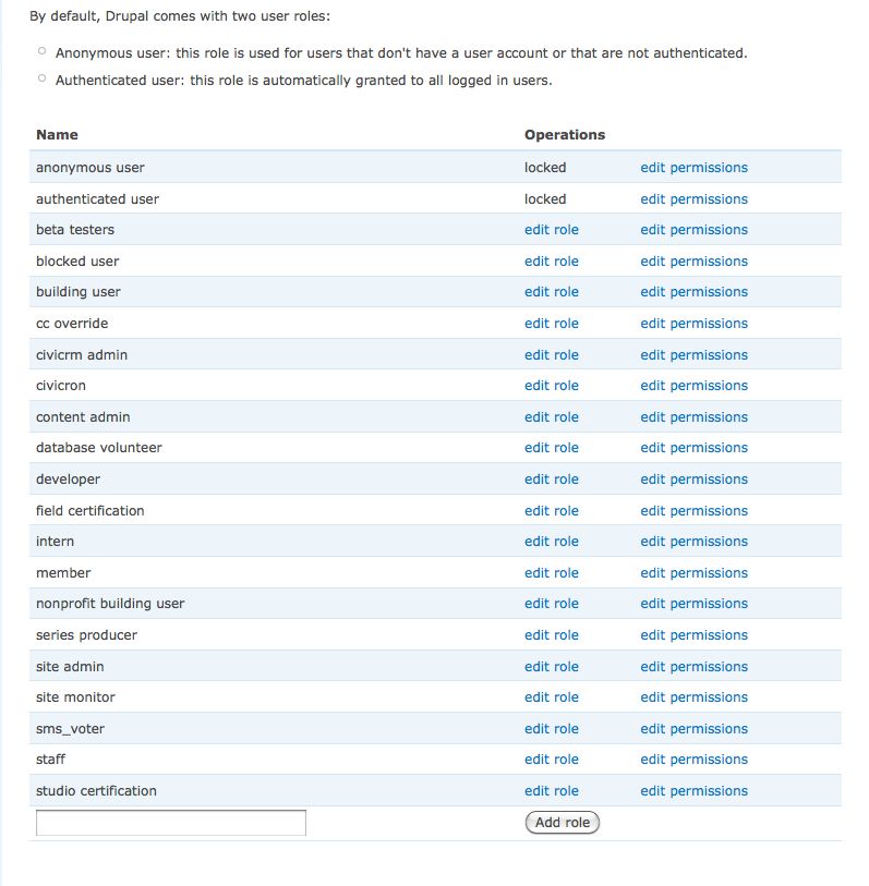 I'm wondering what other sites have done with roles. How many and which ones being set up at BAVC?