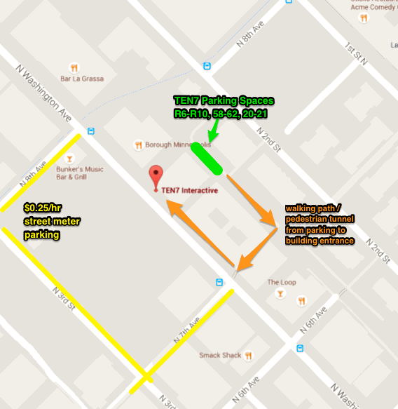 Free parking spots available behind building, on 2nd Ave: parking map